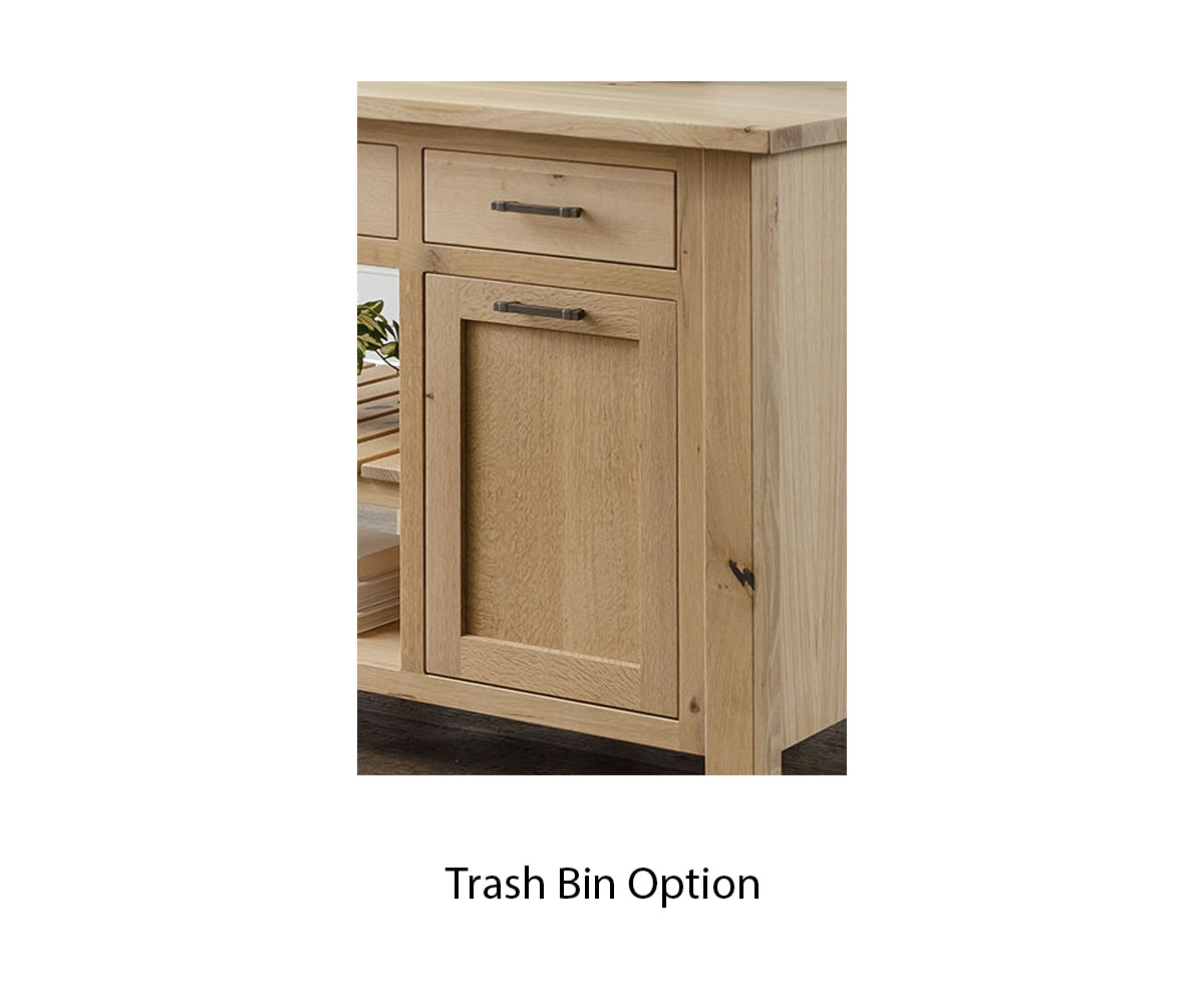 • Trash can pull out in place of the storage door