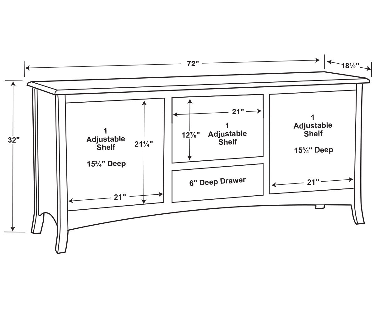 Dimensions: 72″W x 18½”D x 32″H